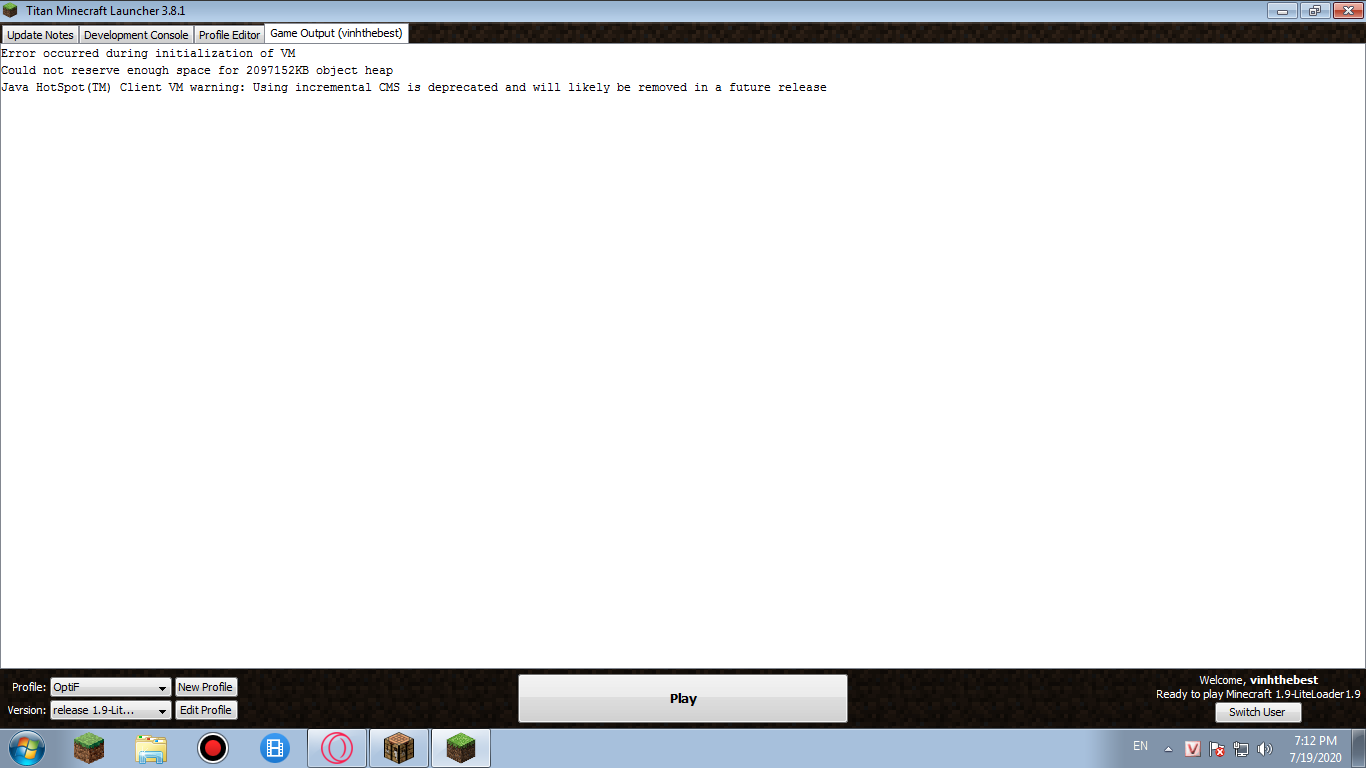 Ai bt sửa lỗi này không? Giúp với :( vô phần profile chỉnh thành -Xmx2G thì vô game ko đc.