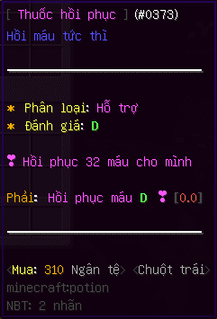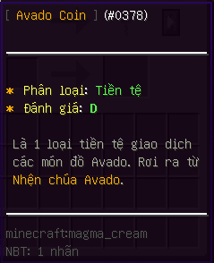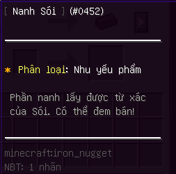 Một số vật phẩm có thể dùng để bán(kiếm được từ mob)
