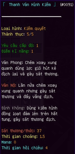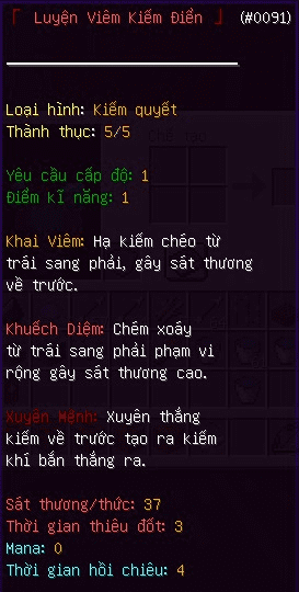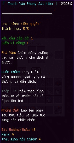 4) Hơn 200 kĩ năng(bao gồm cả kĩ năng file sử dụng và kĩ năng tui làm và nhét vô đó, có nhiều kĩ năng ngon được trích từ nhiều file khác của tôi). Có 6 loại attr cho người chơi nâng