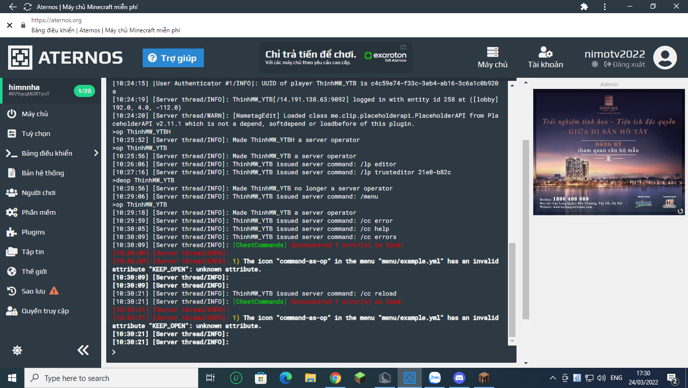 MÌnh Dùng Plugins Chest Command (Chắc Ai Cũng Biết)