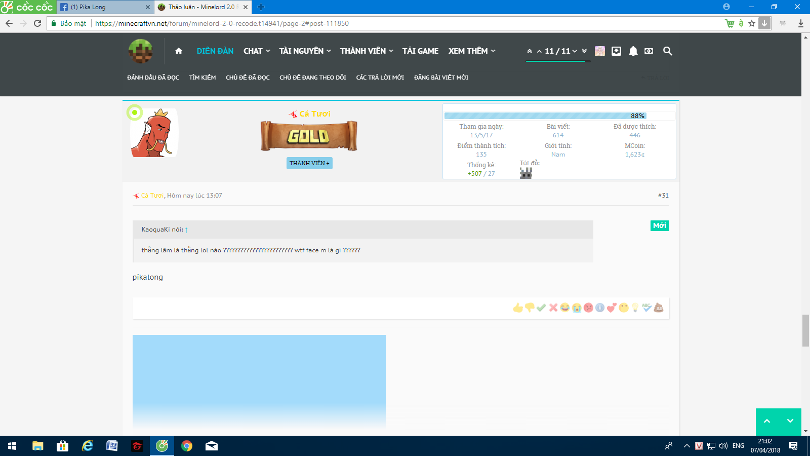 Đầu tiên, tao đăng 1 bài trên Minecraft[QuảngCao............ mời bọn nó vào hợp tác, thằng trên nó vào, lúc đầu ôke oke lắm, tao với nó cùng làm file, lúc đó có 1 con VPS, rồi sau VPS hết hạn, t mua cái mới, vẫn làm, nó về quê, nó send t 1 file server RPG hay gì đấy bảo t tự mở, t vẫn dùng cái VPS và mở, sau đấy 1 tháng vì server ko duy trì được nên sập, t cũng bỏ mine 1 thời gian tầm 2 - 3 tháng cho đến khi t lại có hứng làm, t vẫn kết bạn với bọn nó bình thường, hỏi chuyện bla bla bla, cái hồi mà thằng @Tyn Bảy Màu còn hoành hành ý. Rồi nó bảo tao Phá Facebook nó, cãi éo lại nên t block