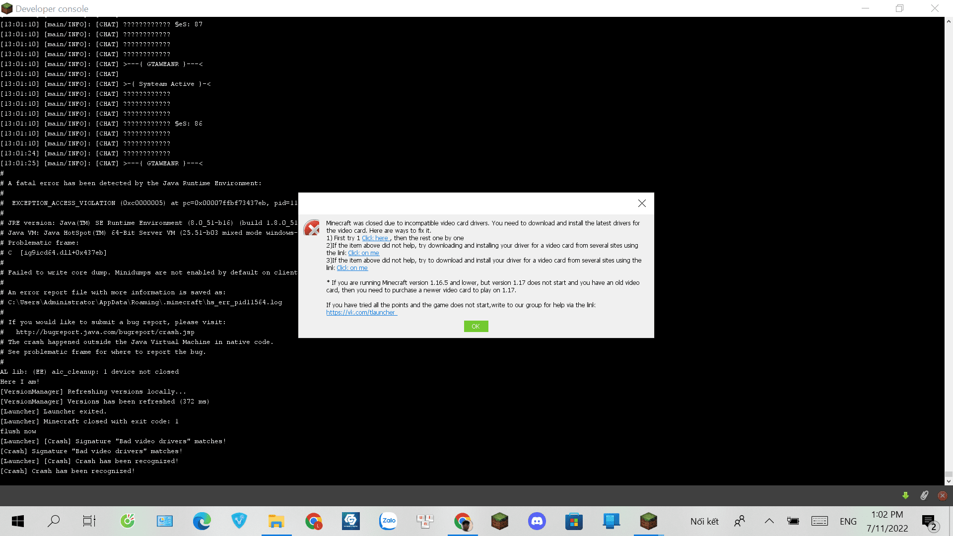 khi em cài resourcepacks của server thì tự động crack game thì do máy thiếu gì ạ