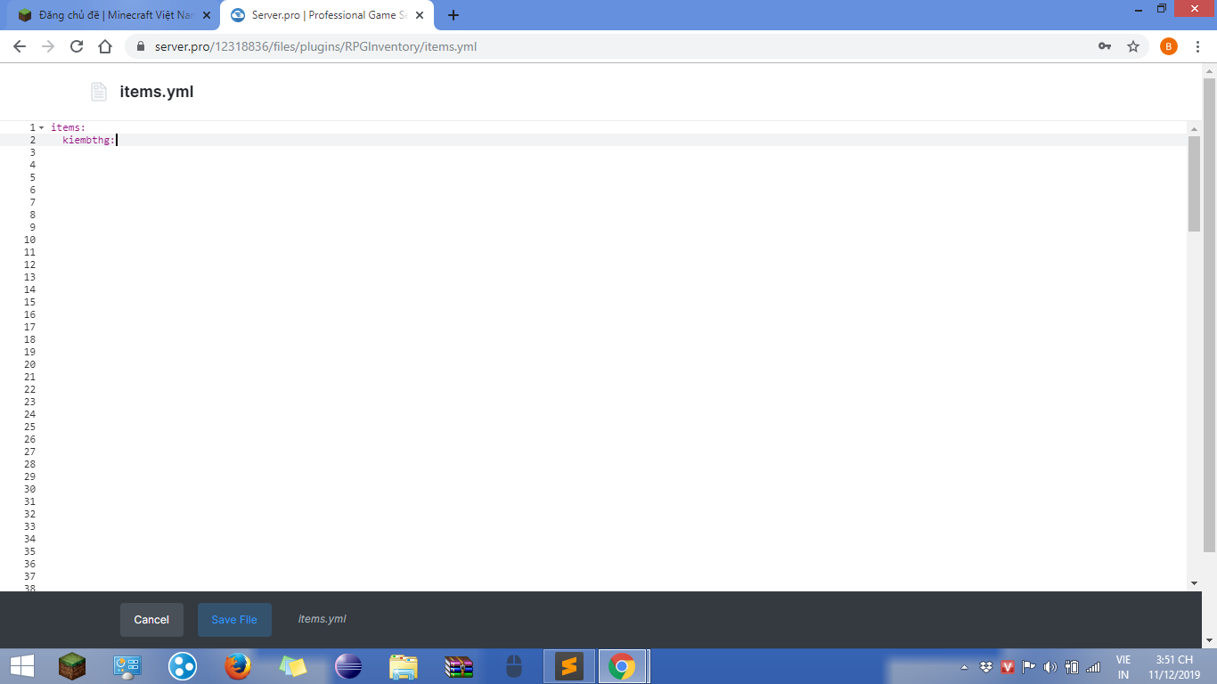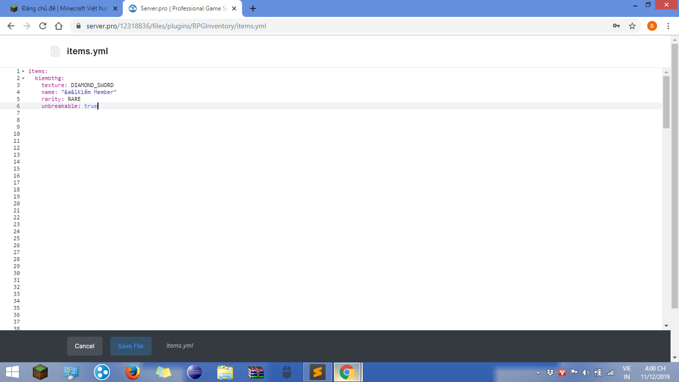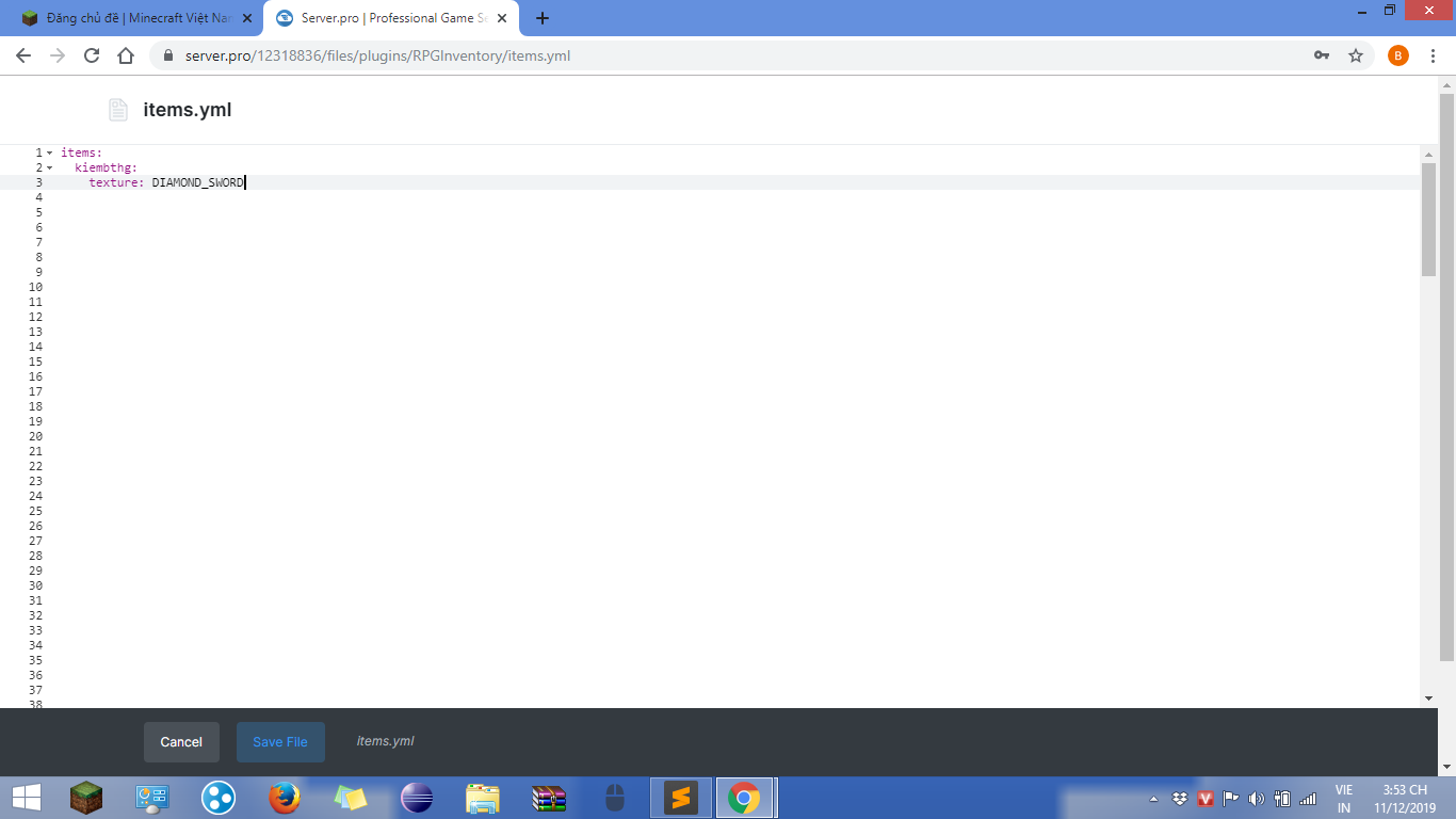 B2: Vào plugins/RPGInventory/items.yml để tạo item mới