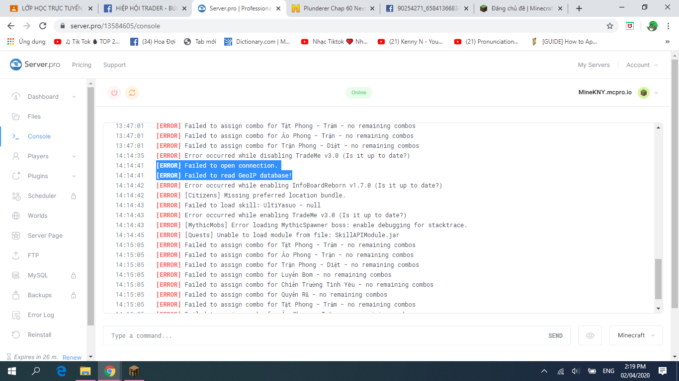 Hôm qua em vẫn vô sv và chơi được như bình thường nhưng hôm nay lúc em bật sv em lên xong vô thì nó kiểu "đang tạo địa hình...." 1 lúc lâu rồi nó hiện là "đã hết thời gian", dưới đây là quá trình ạ!! Và mình thấy chắc là lỗi này, có ai biết fix k ạ???View attachment 20964