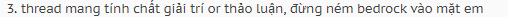 3. thread mang tính chất giải trí or thảo luận, đừng ném bedrock vào mặt em