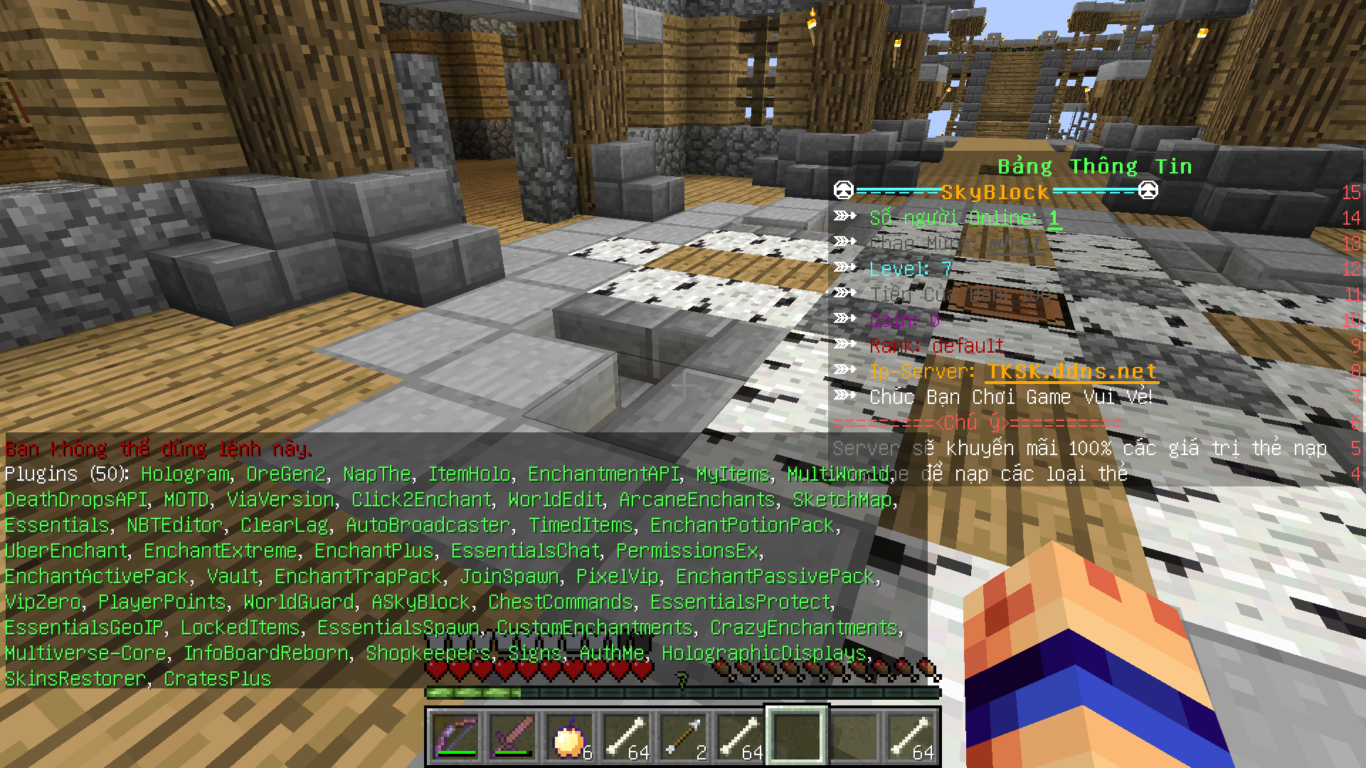 vậy rốt cuộc bàn xài pixelvip or vipzero ? nếu là pixelvip thì bạn phần config chèn world name của Askyblock vào rồi reload lại là được.