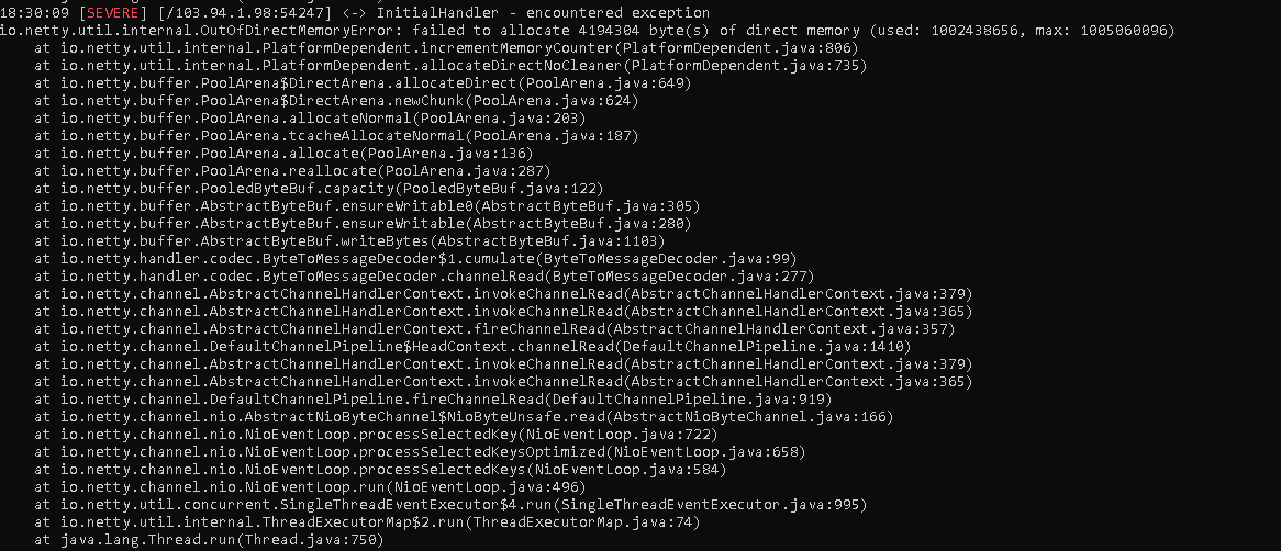 đây là lí do bị văng trong game: failed to allocate 4194304 byte(s) of direct memory (used: 1002438656, max: 1005060096)