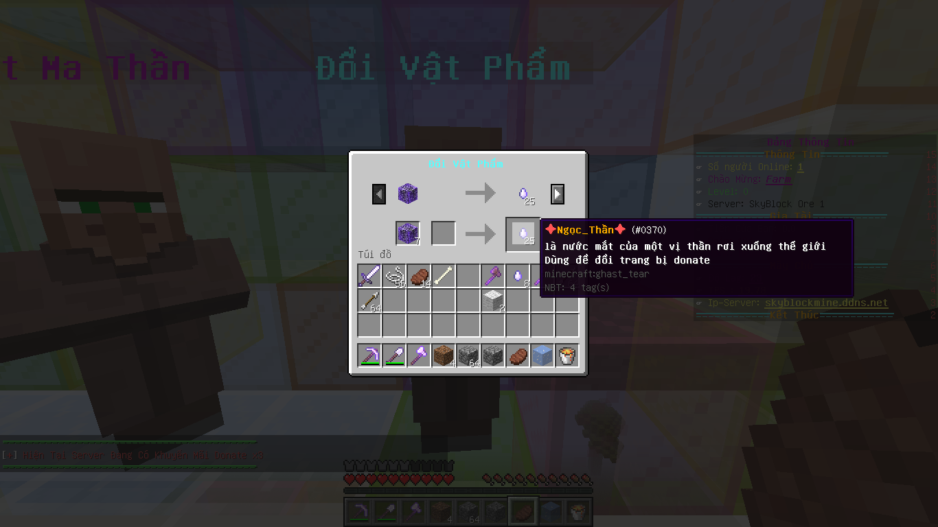 vcl thế mà cx k tìm có đơn giản mà cx phải lên hỏi bên trade đổi dc mà bên donate k đổi dc chì là do sai tên item hay sai lore hoặc enchant chứ còn gì nữa