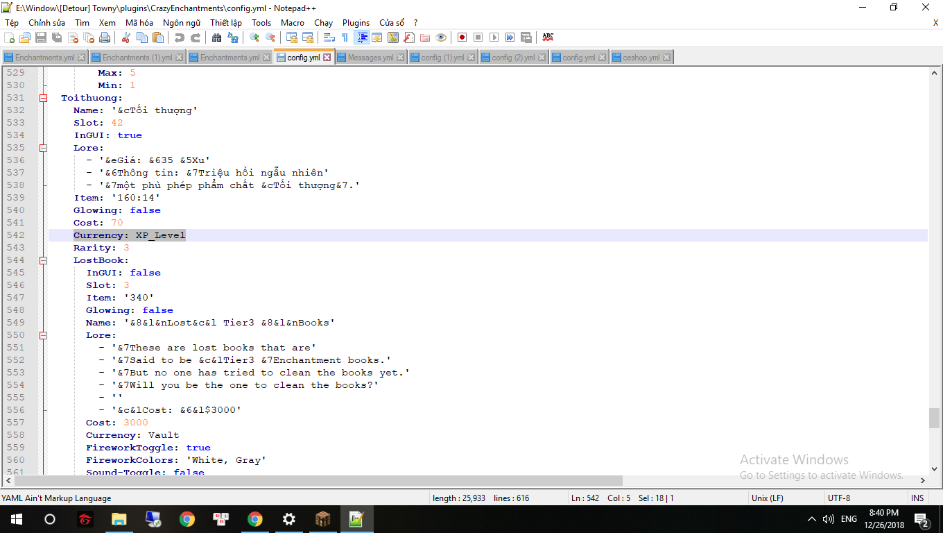 Config mẫu CrazyEnchantments Việt Hóa 95% Plugin Cày Exp Mở Sách
