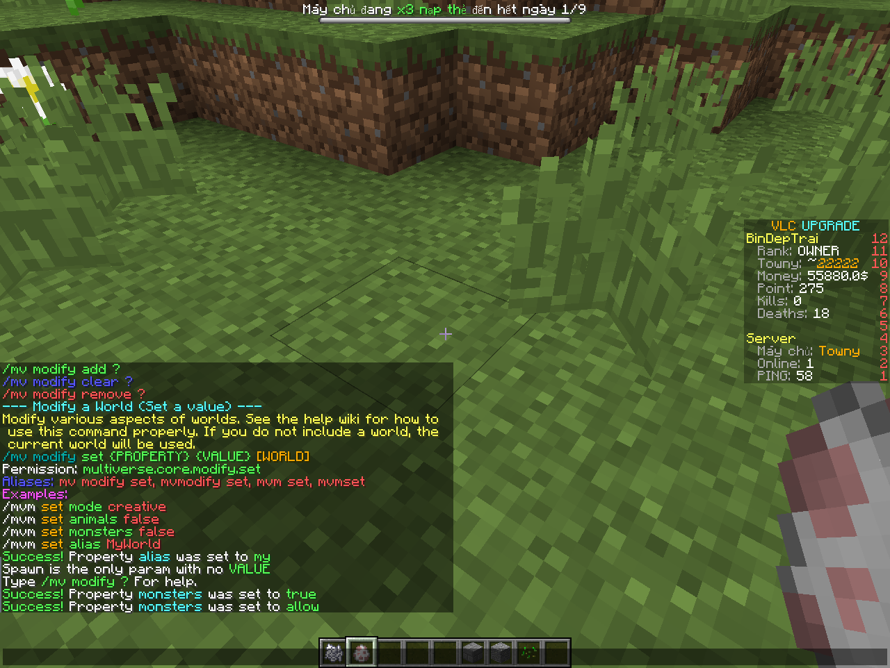 world không ra spawn mobs /rg _global_ cac kieu luôn vẫn v nhưng /mv create survival xong em tp qua world survival thì nó lại đặt spawn dc và có spawn mobs khác tự động hồi sinh còn bên world thì chả thấy con gì cứu em với