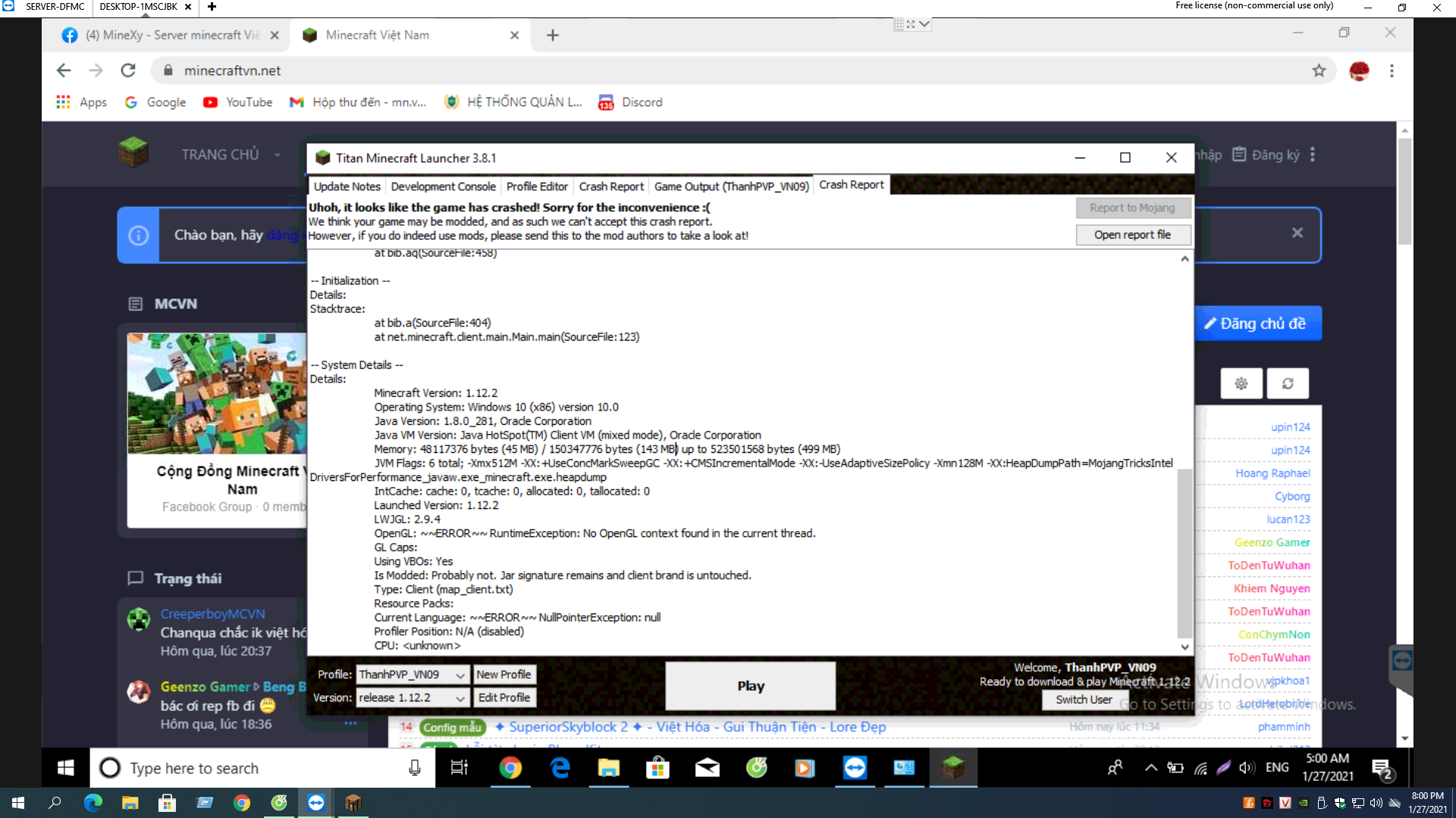 Hỏi về Minecraft Đây là lỗi gì thế mấy bạn :3?