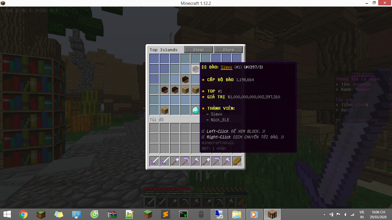 +Tính năng: Đã gọi là Skyblock truyền thống thì nó cũng bình thường thôi không có gì mới mẻ, nhưng vào chơi thử nhé đừng thấy vậy mà out.