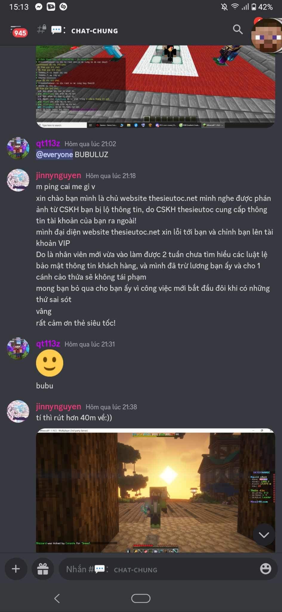 Làm không dám nhận? T ghé vô discord của m để tìm cách giải quyết mọi chuyện, nếu m không làm thì sao lại chửi bới và ban t khỏi Discord để trốn tránh?không sai nên không có lý do gì phải cần đính chính ! cướp được cái file thì quá ngon rồi MINETNT
