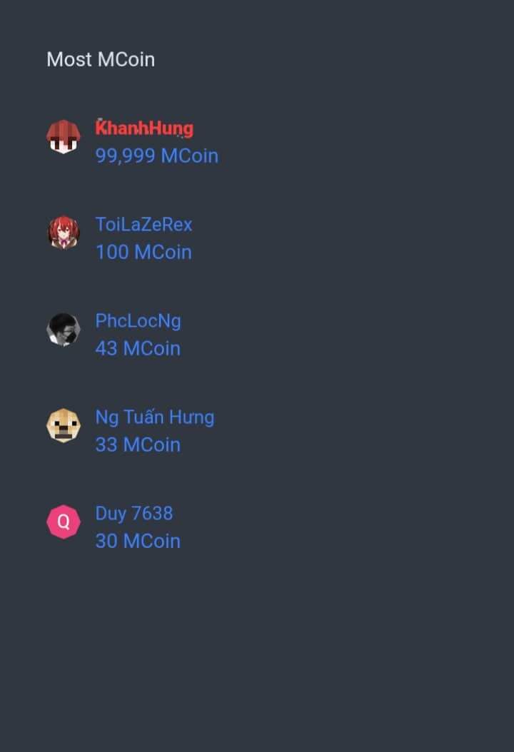 - [MCoin] nhận được khi tham gia hoạt động trong forum, cụ thể như sau: