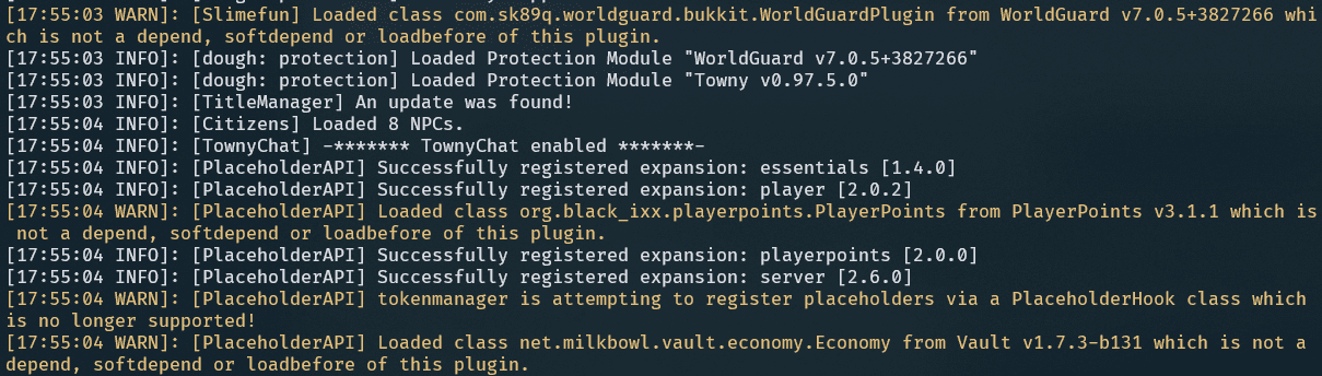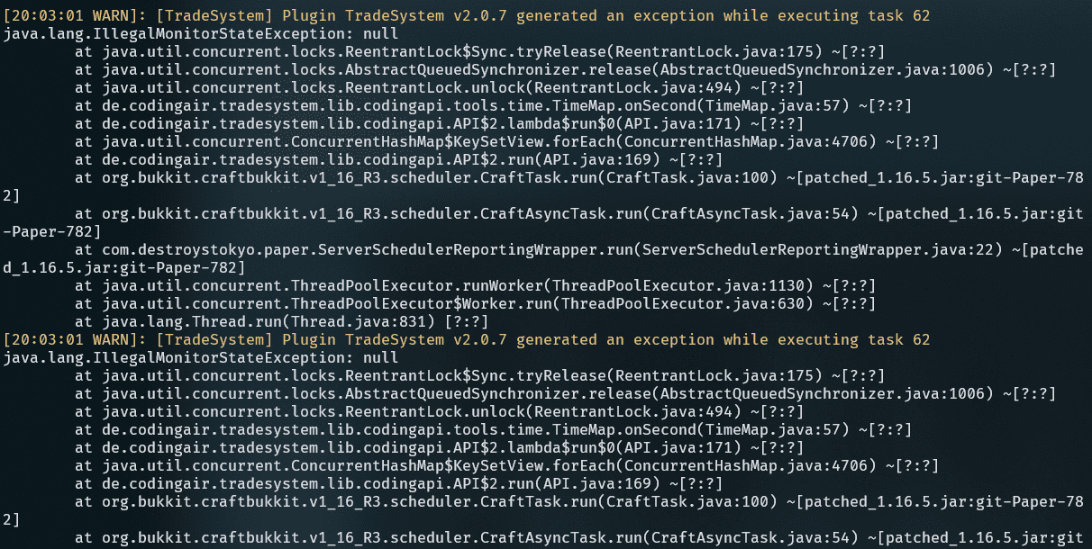 tối có mở 1 server towny 1.16.5 mà bị những lỗi sau đây ;-;