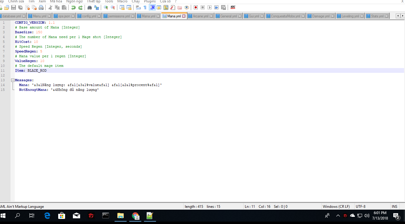 Về plugin RPG Player Leveling, trong config thuộc hệ Mage thì sử dụng Mana, nhưng chỉ dùng được 1 vũ khí là que quỷ lửa ( như trong hình ), em muốn cho nó dùng được nhiều như Gậy, Sách, Que Quỷ Lửa v.v thì làm sao ạ? Như trong hình thì có 1