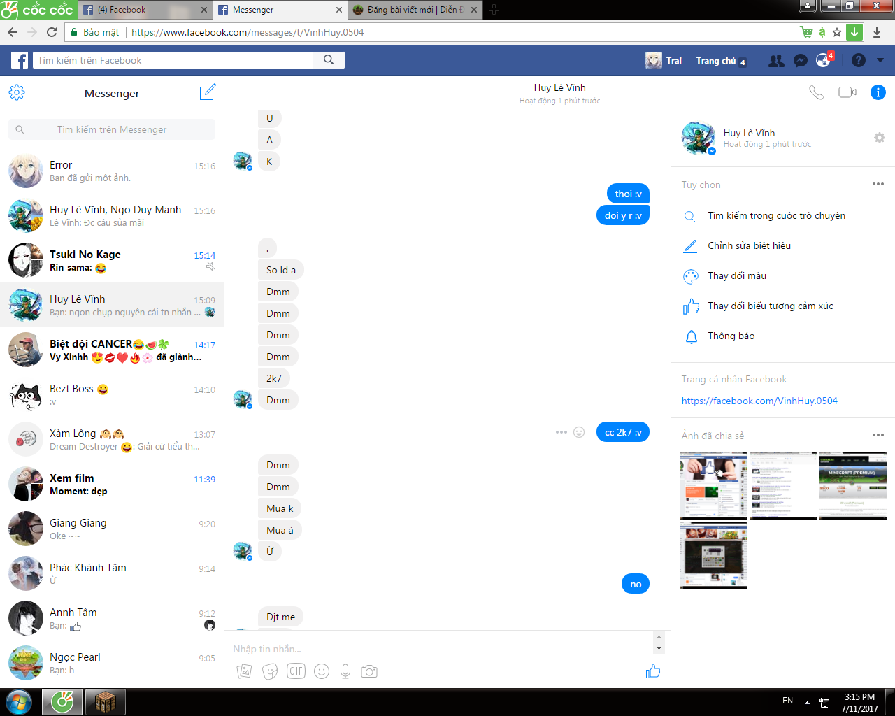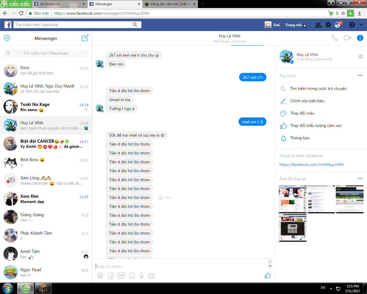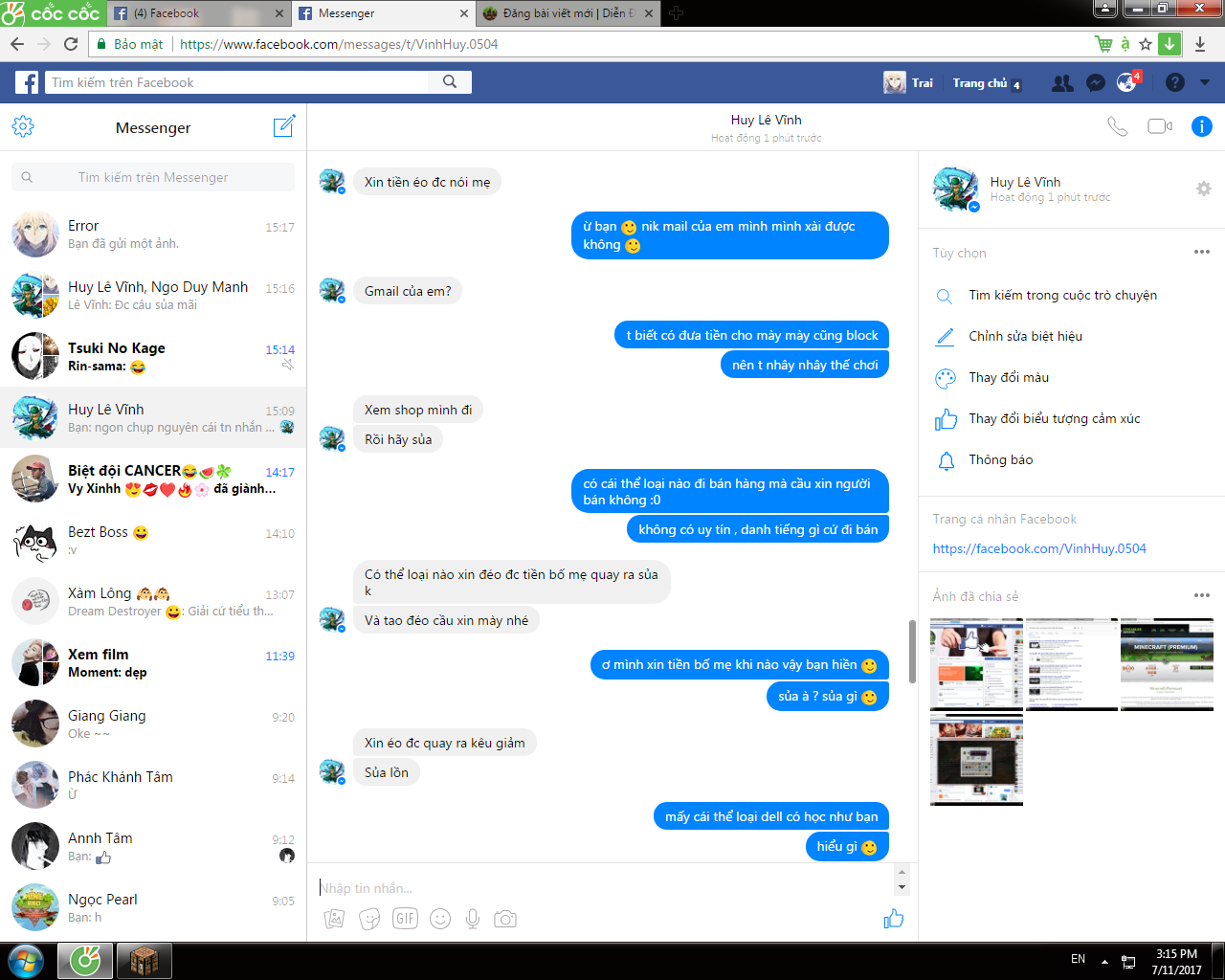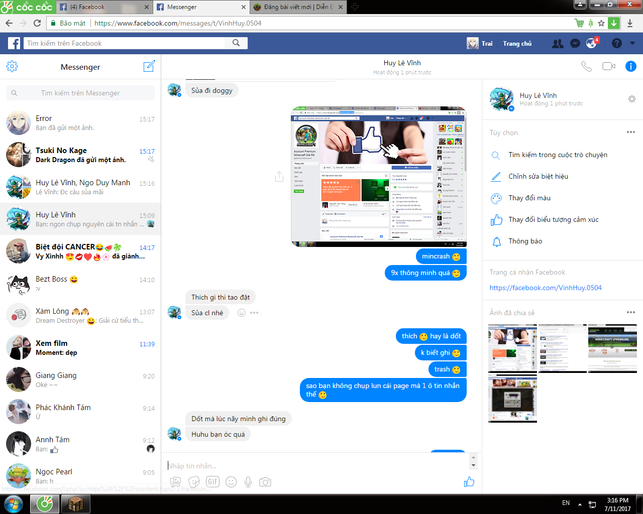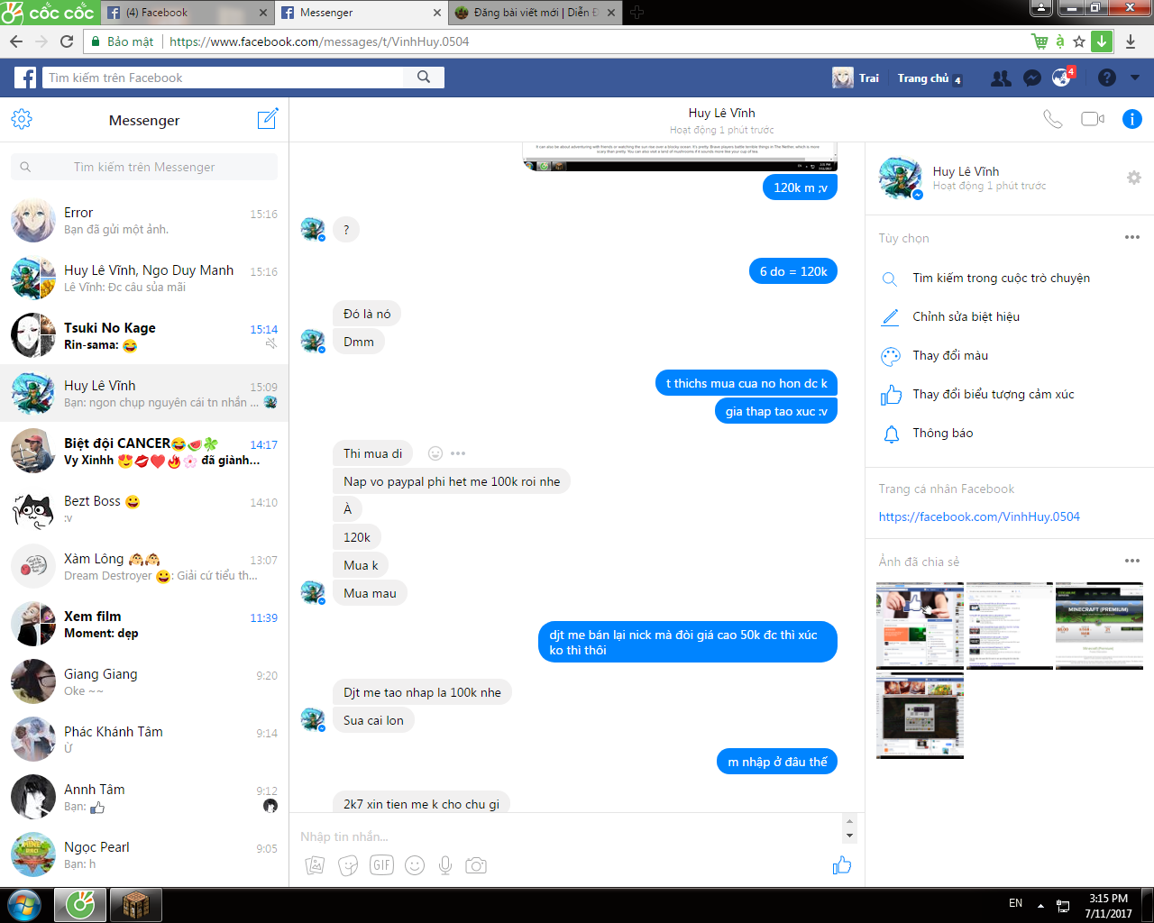kêu show tin nhắn page đell chịu show,rồi còn dọa cho page ác nacker các kiểu . Nói chung bạn ấy là một thằng nhóc vô học , vô văn hóa đi lừa đảo , 1 thằng cố chấp . Xem ảnh để biết thêm thông tin , à mà bác nào rảnh rảnh ib chửi nó giúp cái , nchuyen với mấy cái loại này max ức chế ; tiện cho nik nó 1 vé lên trời .