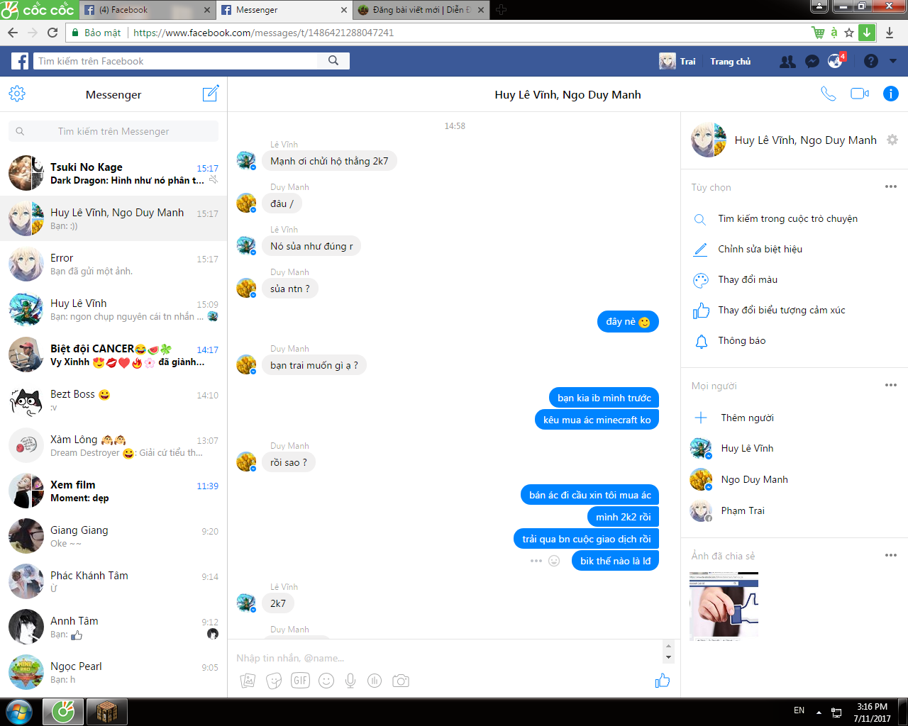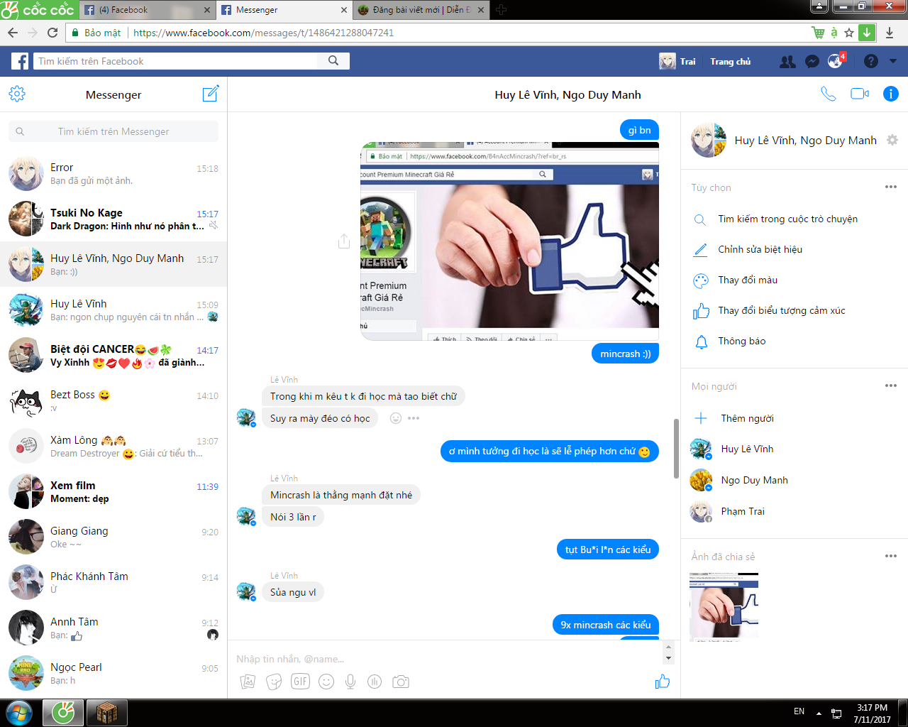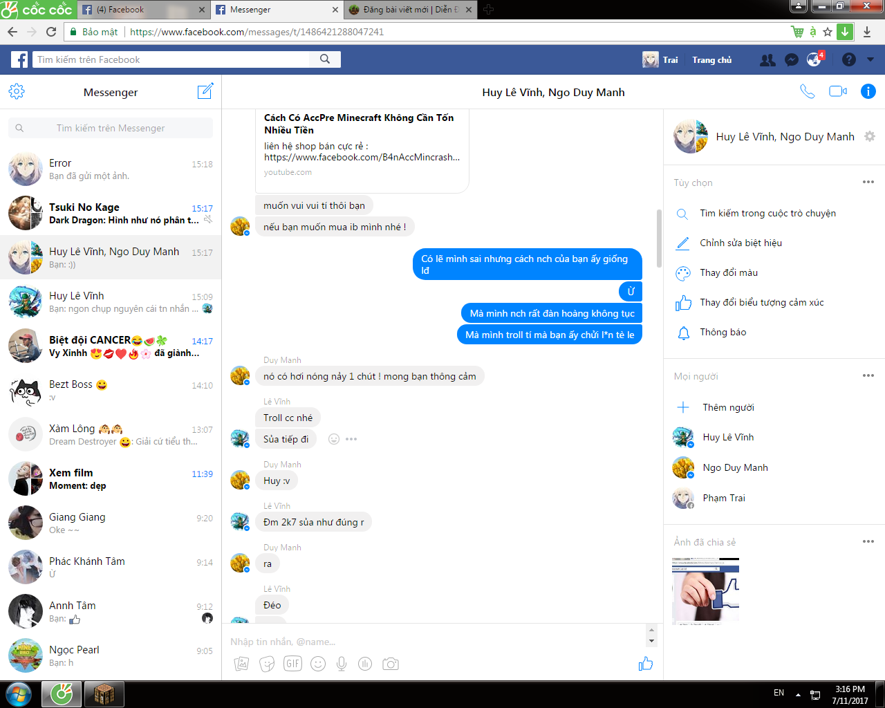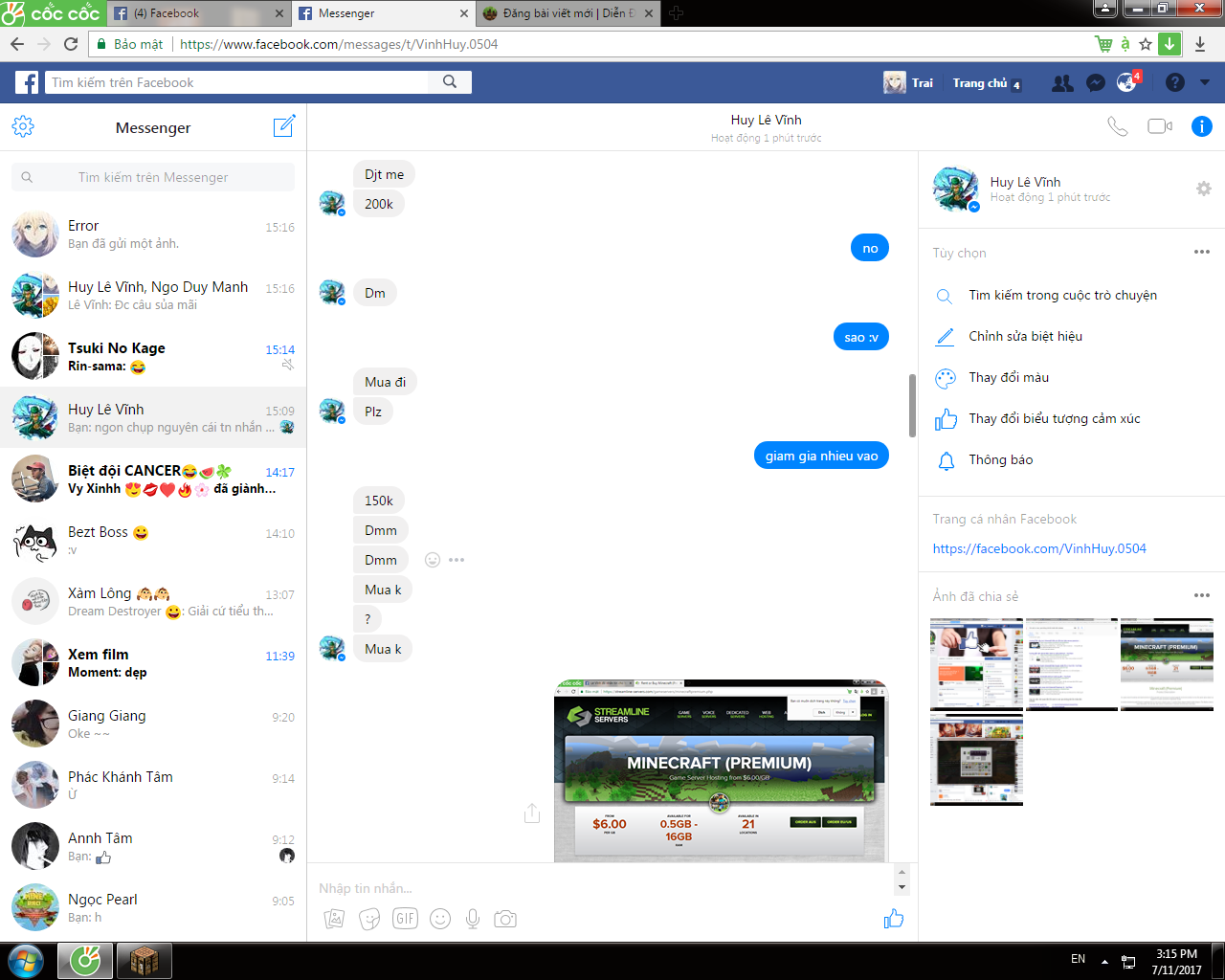 Tóm tắt: Ban đầu bạn trẻ này đi bán ác ác minecraft giá 250k , rank đồ các kiểu , nhìn cái cách bán hàng cầu xin khách hàng , cách nói chuyện là mình biết lừa đảo rồi ;v nên mình tổ lái troll nó hạ giá chơi , bán đéll được đâm ra chửi mẹ người khác , nói tục các kiểu