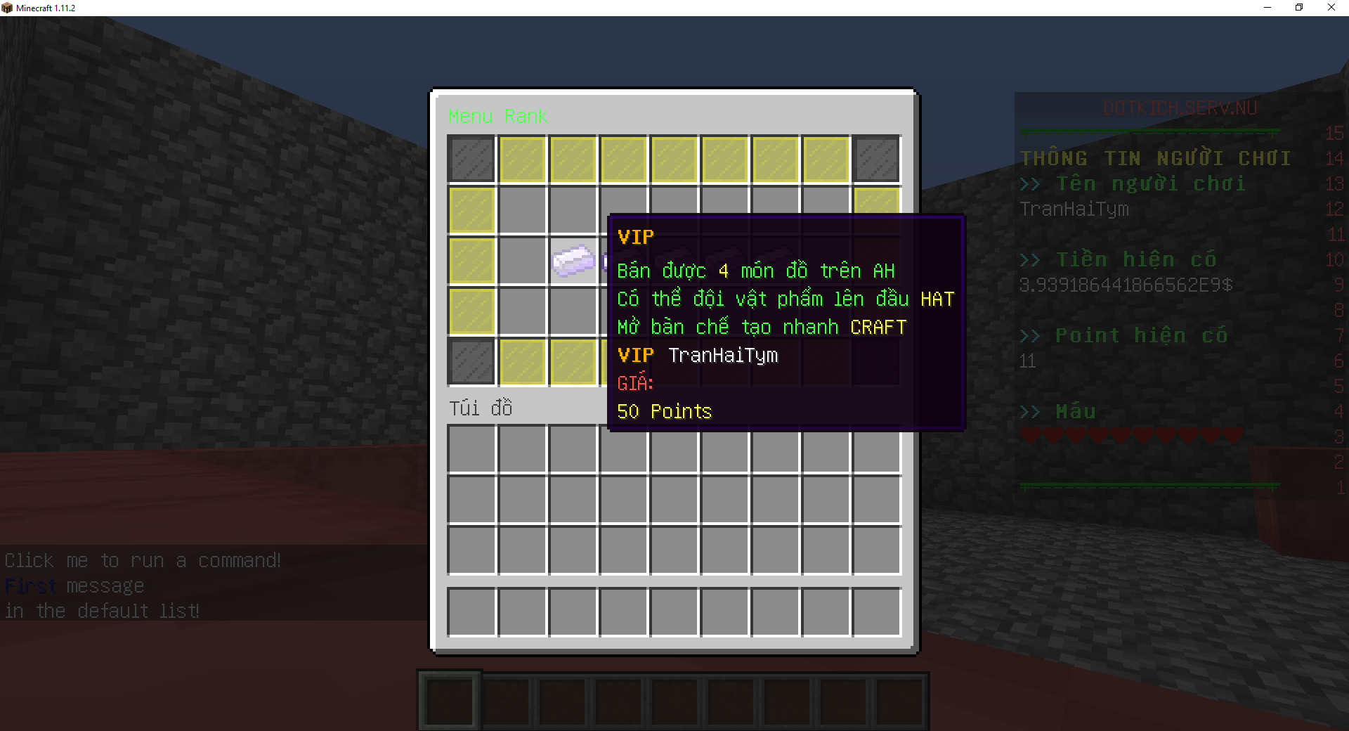 ex user {player} group set vip rồi mà sao member mua rank hk tốn 1 xu z ạ ai bt cách fix lại chỉ mình với ạ nhân tiện cho mình xui bản code plugin CustomEnchant việt hóa luôn ạ