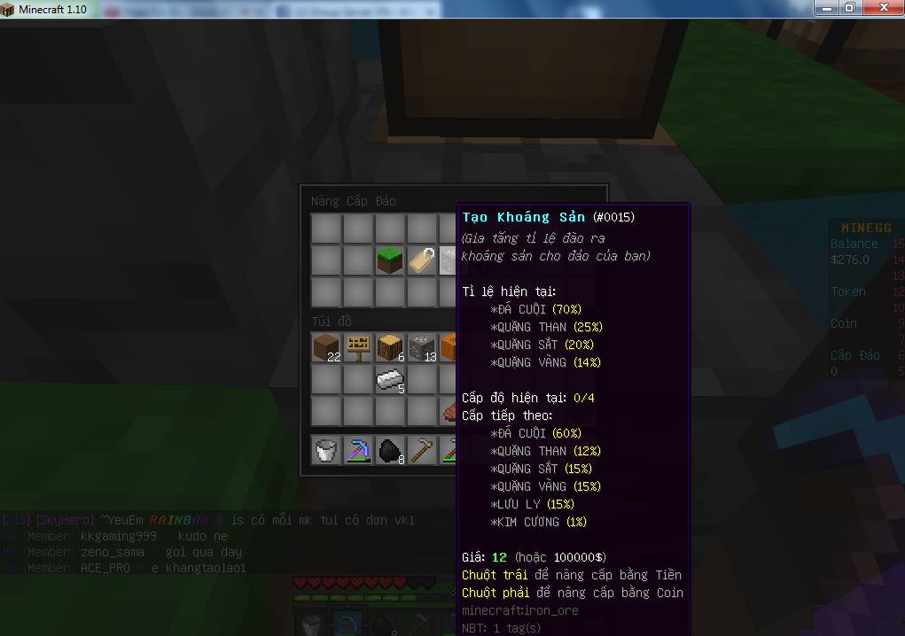 - khi người chơi kick vào đó đủ tiền và coin sẻ thực hiện lệnh và khóa cái chức năng đó