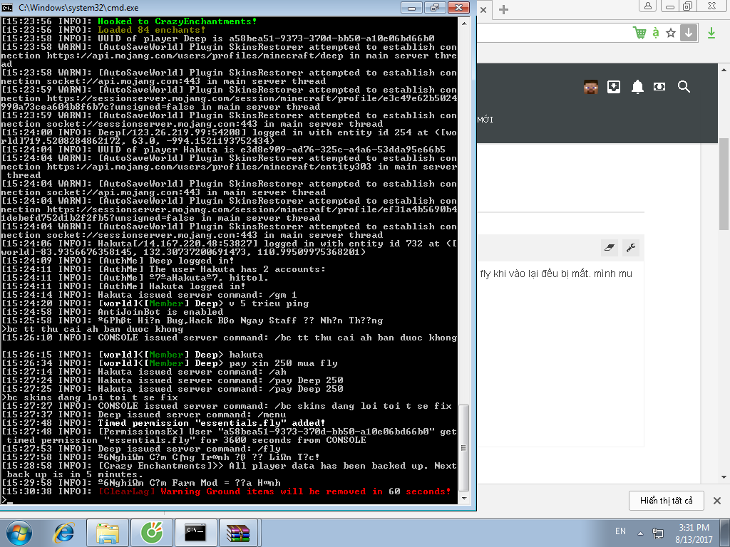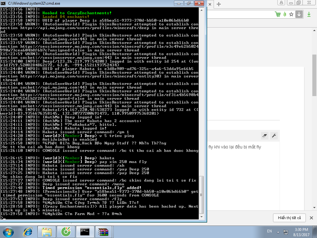 Permission =/= Tính năng lệnh /flyMình có dùng mã pex để bán fly theo giờ nhưng khi tắt console thì tất cả member mua fly khi vào lại đều bị mất. mình mu