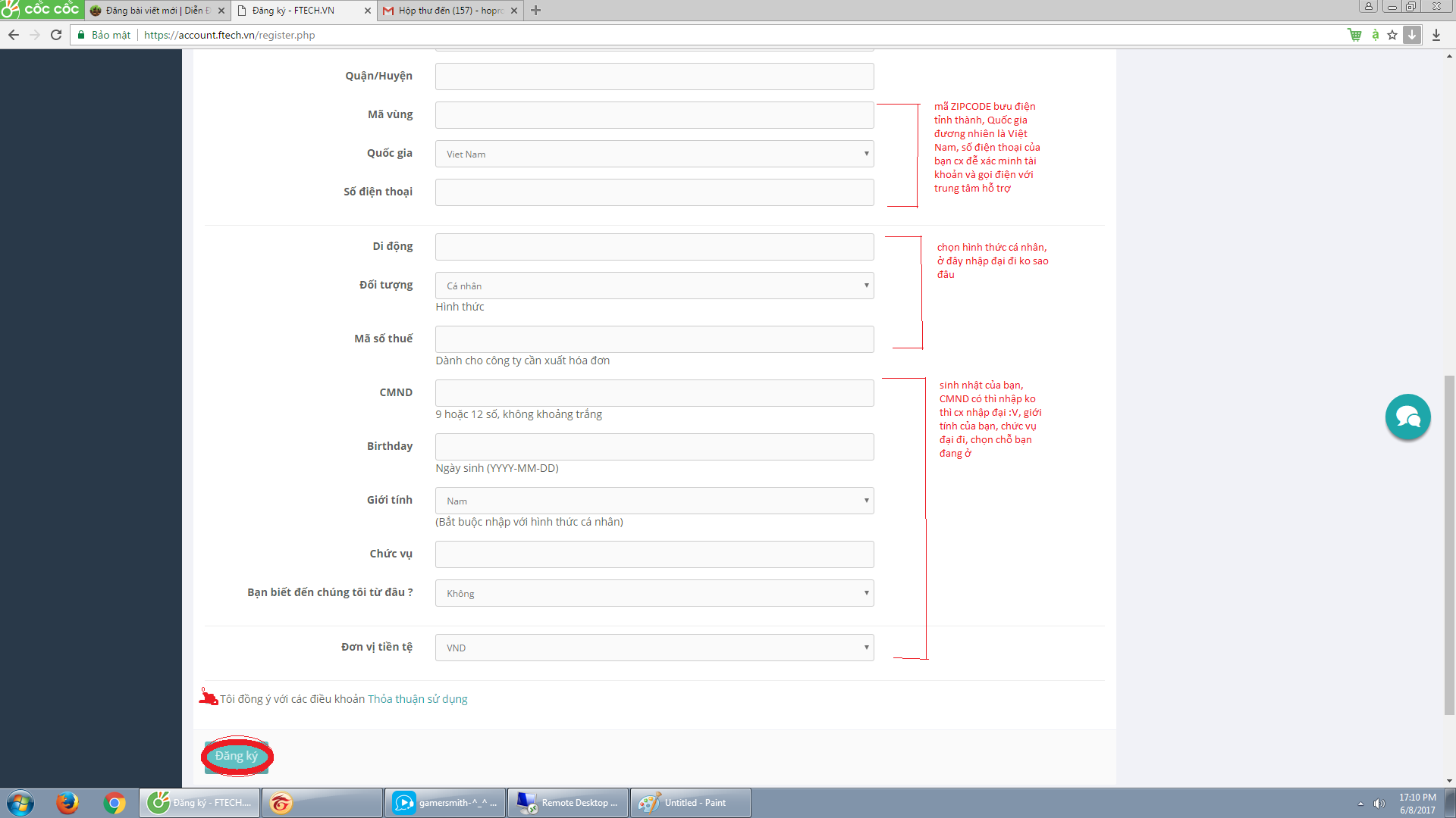 B2: đăng ký tài khoản