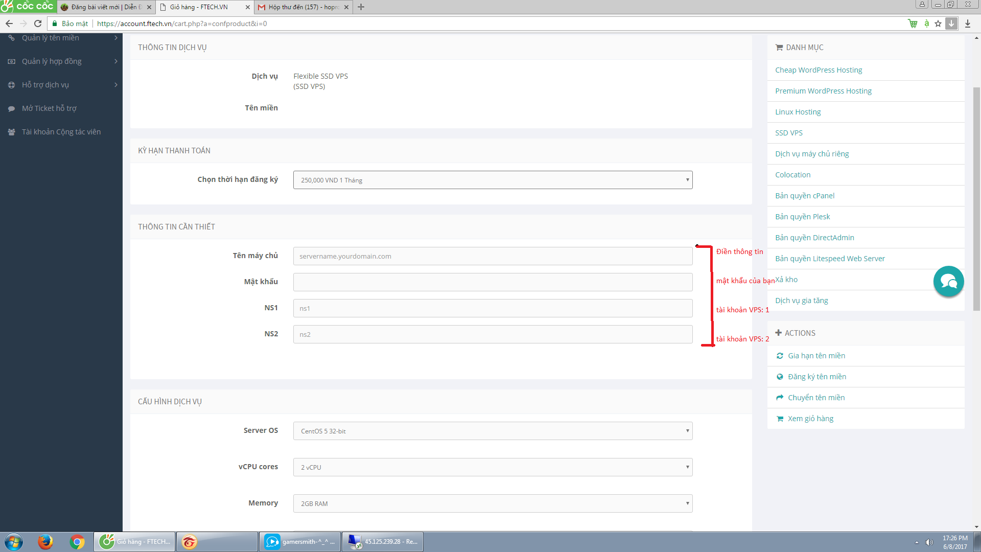 B7: Đăng ký dịch vụ và chờ đợi gửi tài khoản VPS về mail thôi =))