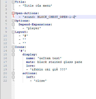 save file lại sau đó mở sv lên, và dùng command /menu thì nó sẽ mở file menu.yml trong menus nếu bạn đặt tên menu.yml thành tên khác thì cũng phải set open: tenkhac