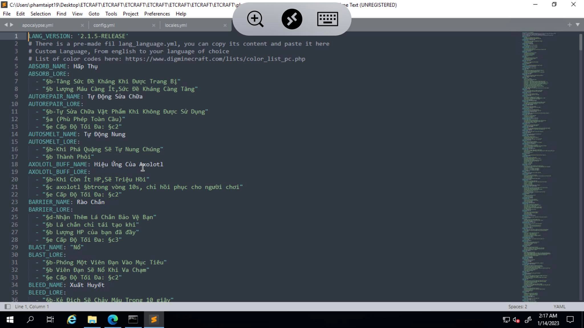 Mọi Người Cho Mình Hỏi Là Tải Sao Mình Ném File lang.yml vào file Custom Enchantment Lại Không Đổi Ngôn Ngữ Vậy