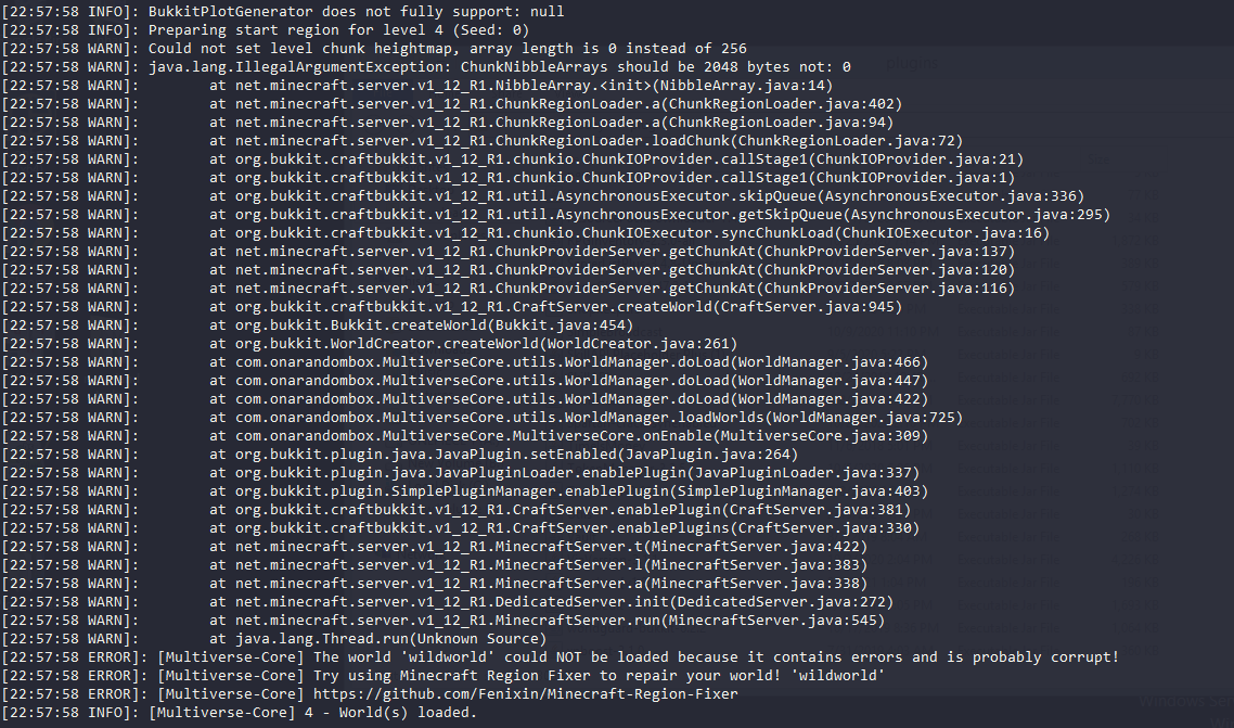 nhưng mà khi run sv nó lại báo thế này và không load đc world