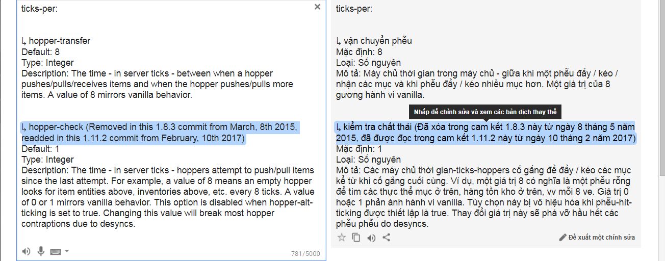 hopper-transfer: 8 = thời gian hopper chuyển/nhận item. giảm xuống thì hopper chuyển/nhận item nhanh hơn và ngược lại
