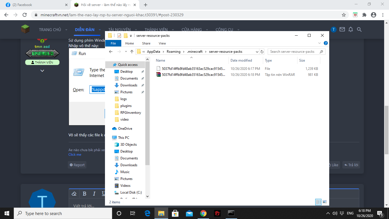 Bước 2 : Gõ " %appdata%\.minecraft\server-resource-packs "