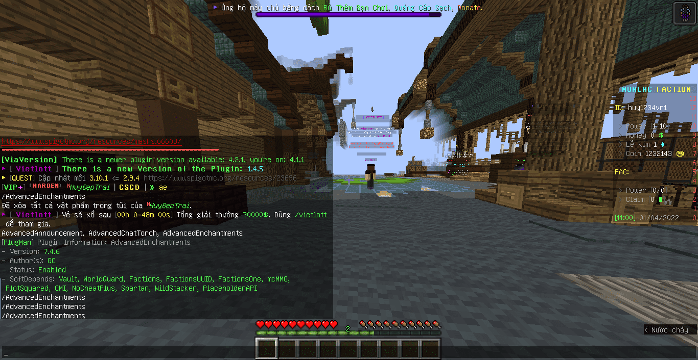 Mọi người cho mình hỏi cái lỗi này sửa làm sao ạ? (cái chỗ /AdvancedEnchantments trên phần chat) Thảo luận MC Server Các bạn đang dùng infoboard nào có lag ko Hỏi về server Cho hỏi về deluxe menu