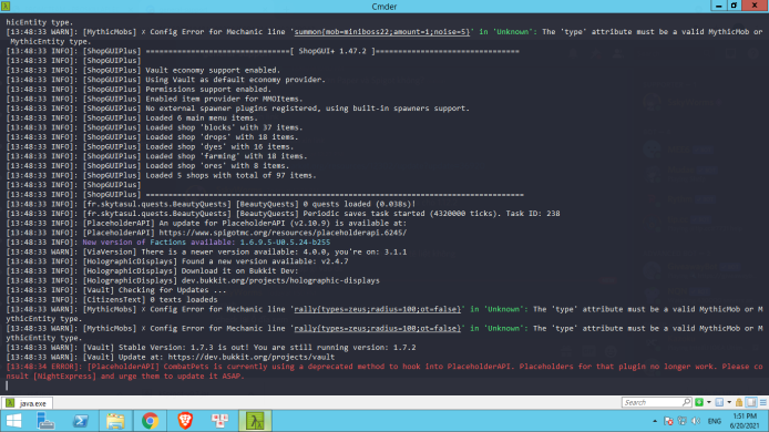 Server vẫn hoạt động bình thường nhưng tps hơi thấp. Cài paperspigot vào server vẫn chạy bình thường.