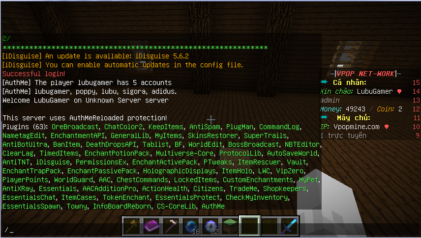 Tình hình là server mình đang làm lúc trước vẫn pvp đồ bthuong` dc. Nhưng h ko pk bị ảnh hưởng hay do pl j` chen vào mà server mình lúc pvp dc lúc không pvp dc Nhưng khi xún lava vẫn bị đốt + bị mobs đánh giết dc. Lưu ý: không bị ảnh hưởng bởi region - /god - server.pvp=true - .Lúc trước có cài WorldtimeRule [Plugin sáng keep tối noonkeep, mình /day /night thì sài bthuong`. K pk thời gian sao do pl nào tác động mà nó k hoạt động nửa nên gỡ lun] Lúc đó có cài combatlog và delete r`. H mọi người soi giúp :(( bị lổi gì. Plugin nào ảnh hưởng hay có khả năng chen ngang việc pvp :(( Nhiều lúc chém liên tục xong bị lag r` die xong méo chém dc nửa. Bác @John Crater @Banbeucmas @I Am Newbie @Shuu @Thanh Long 5m .... Mình cố tìm + fix lổi này gần hơn tháng nay r` mà chưa tiến triễn :(( Với bác @bin béo bảo cho pl j` coi fix dc k củng mất tích h triệu hồi giúp với :((. Sắp open sv v mà h bị v.