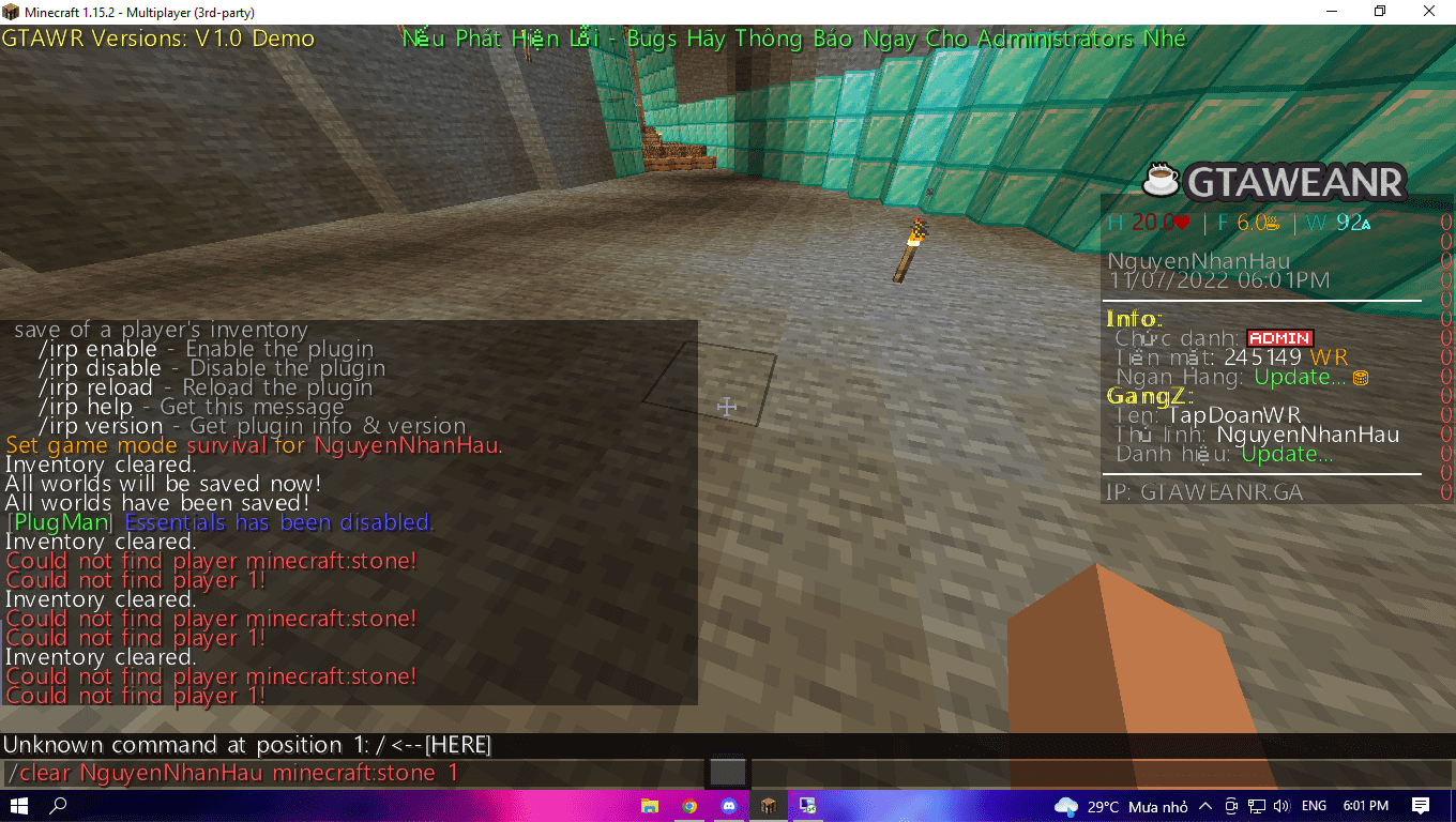 mình không biết là plugins liên quan tới inventory hay gì đó hay là do lỗi chỗ nào.