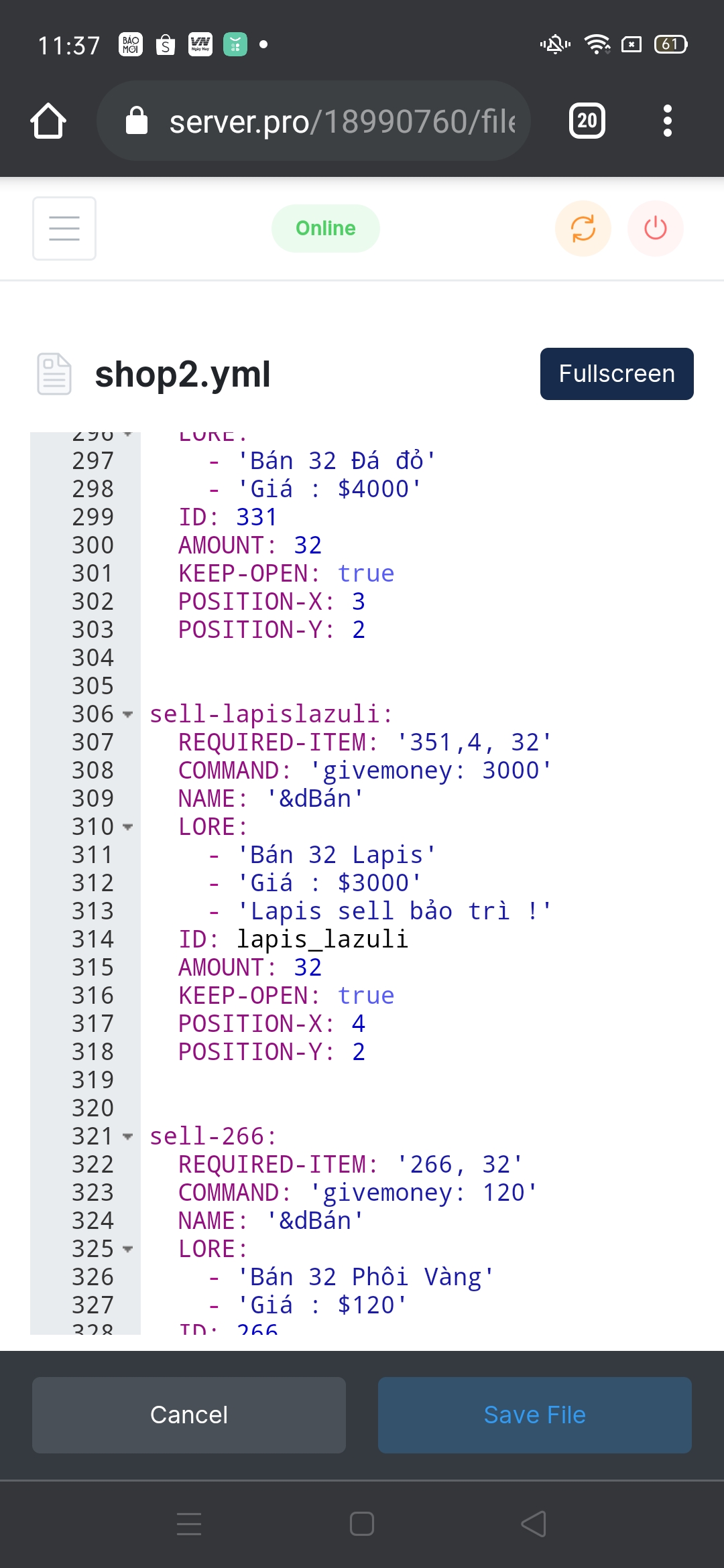 Hỏi về server Lỗi không thể sell lapis trong shop