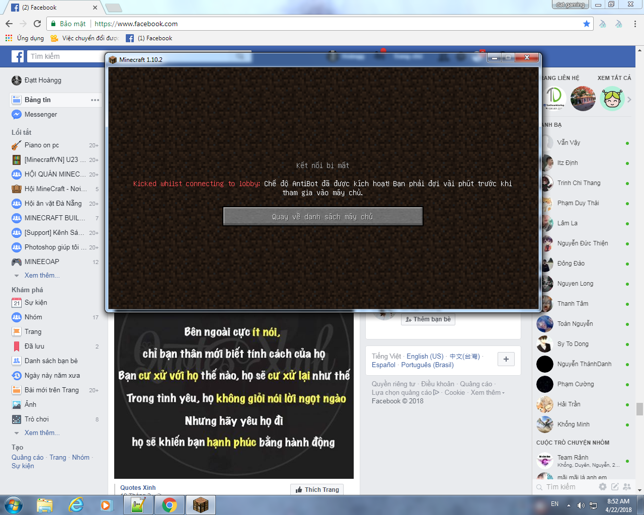 Hỏi về Minecraft Lỗi ko vào dc minecraft