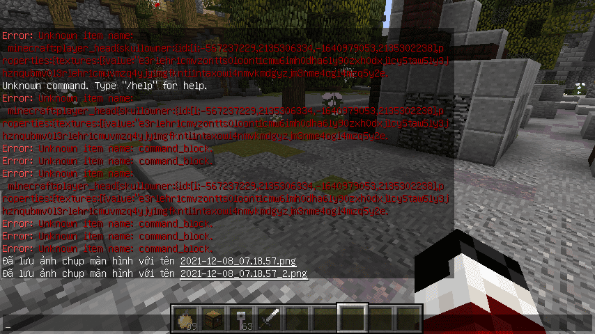 cho tui hỏi vì sao server tui dùng lệnh lấy command_block,hay các vật phẩm đặc biệt khác nó ra lỗi như này vậy