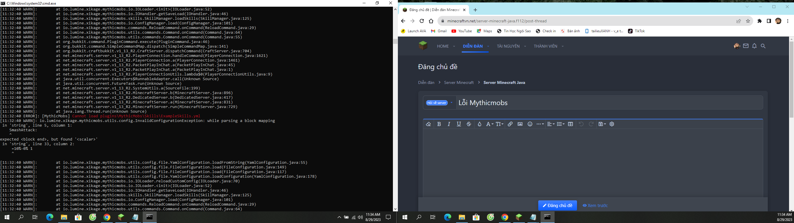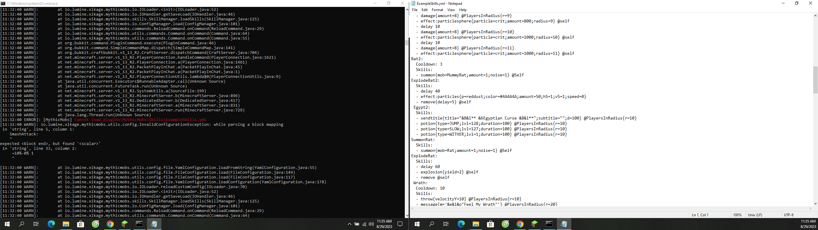 Hỏi về server Lỗi Mythicmobs