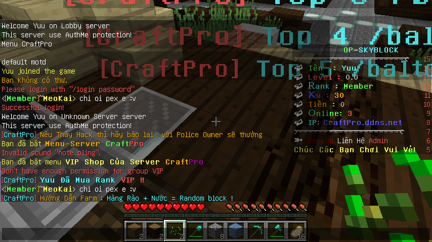 Đã giải quyết lỗi permissionsex prefix vs cái info-board không hiện lên
