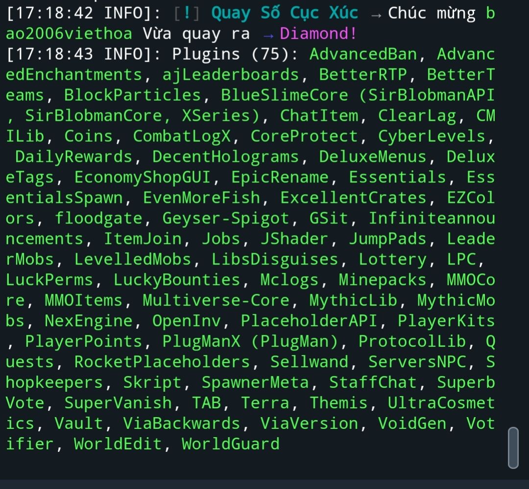 Các bác xem biết ls k Cứ 1-2s lại spam cả đống Đã update geyser bản mới nhất. Hỏi về server Lỗi Mythicmobs - Mythiclib Hỏi về server Cosmatics