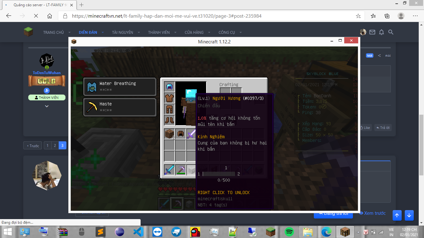 Góc pet: mua skeleton lần 1 trừ money nma ko thấy, mua lần 2 có rồi nma lại thêm cái đầu skeleton trong inv, 200k pay
