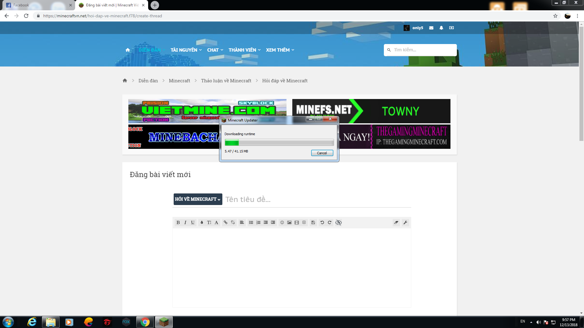 Bạn nào giúp mình với , mình tải minecraft về (từ chính launcher ở minecraft.net luôn nhé) khi update thì chỉ mới 5MB nó đứng im luôn , như hình bên dưới