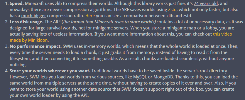 SlimeWorldManager sẽ tốt hơn cho các arena nhỏ, thay vì dùng region như minecraft thông thường