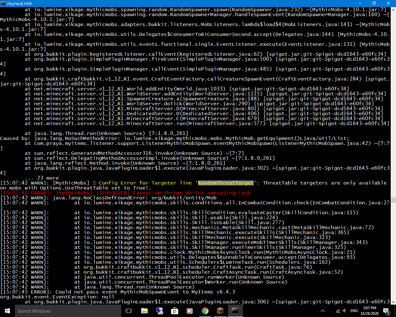 Thứ nhất là plugin Mythicmobs không hỗ trợ MyItems nên phải cài ở phiên bản 4.7.2 để tránh không gặp lỗi