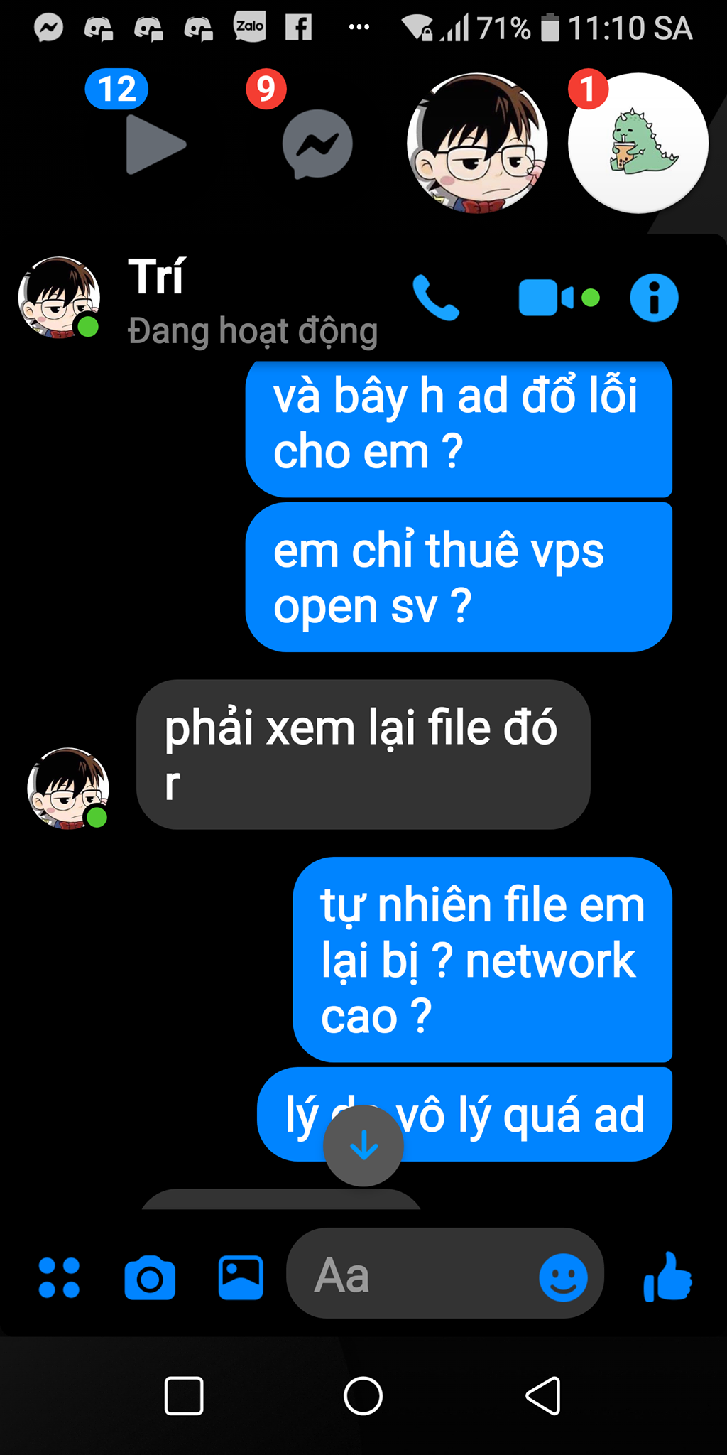 Chuyện là này! Mình có 1 server open chưa đầy 3 ngày, lúc đó server mình chưa có vps! nên mình quyết định thuê vps 600k (1core/1ram) thử xem sao. mình cũng tìm hiểu shop vps này cách đây tầm 2 - 3 tháng và thấy cũng uy tín, nói chuyện 1 cách lịch sự, sau khi tìm hiểu xong thì mình bắt đầu thuê, mình open server tới 1 ngày xong vps mình bị lỗi! Mình đã nhờ bạn ad vps fix lỗi dùm và bị lại tiếp ! lỗi này nó cứ diễn tiếp và diễn tiếp! Mình lại tiếp tục nói với ad ,nhưng ad lại nói là do network cao ,file server có vấn đề! mà mặc dù server mình tầm 3-5 mem lại bị ? Mình set ram còn 0.5MB rùi còn bị ? CÒN HƠN NỮA ! Bạn ad ấy còn nói là do mình mà làm khách bạn ấy gặp lỗi ??? THẬT LÀ VÔ LÝ ? Mình chỉ thuê vps thôi mà nói mình như vậy ! Mình bị mất mem lại tại bạn ấy