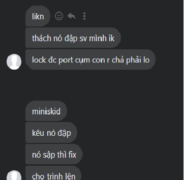 Nói chung cái gì nó cũng tưởng nó là nhất , đi thách antrc (SQ) & miniskid crash sv , rồi sập lại kêu ! Mình đã ngăn nó bảo đừng thách rồi vẫn cứ đi thách thức ?
