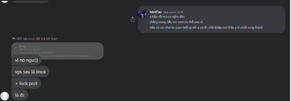 Recode mấy cái plugin như ef , xcord xong đổi eng súc phạm người khác , thách đố phá sv. Sập thì đổ tại win , đổi qua linux đéo bt sài lại xin lại win