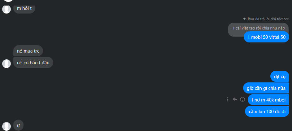 Ae đọc kỹ tin nhắn dưới hiểu về nó nhẽ , mình kh nhận mình hay , mình đúng nhưng th ngu này cũng thế mà thôi